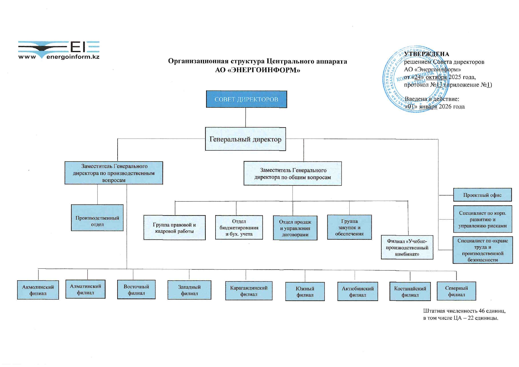 ОРГАНИЗАЦИОННАЯ СТРУКТУРА АО «ЭНЕРГОИНФОРМ»